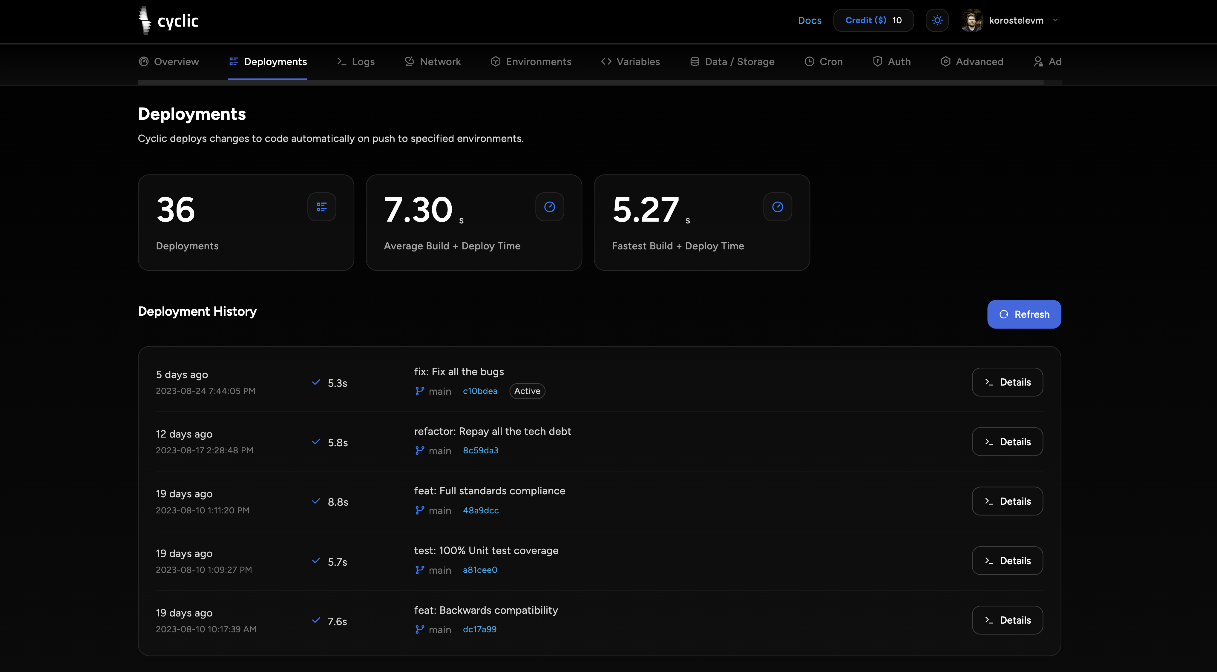 Cyclic Apps are available immediately and on demand. No waiting 30 seconds for containers to be spun up. Even on free tier.