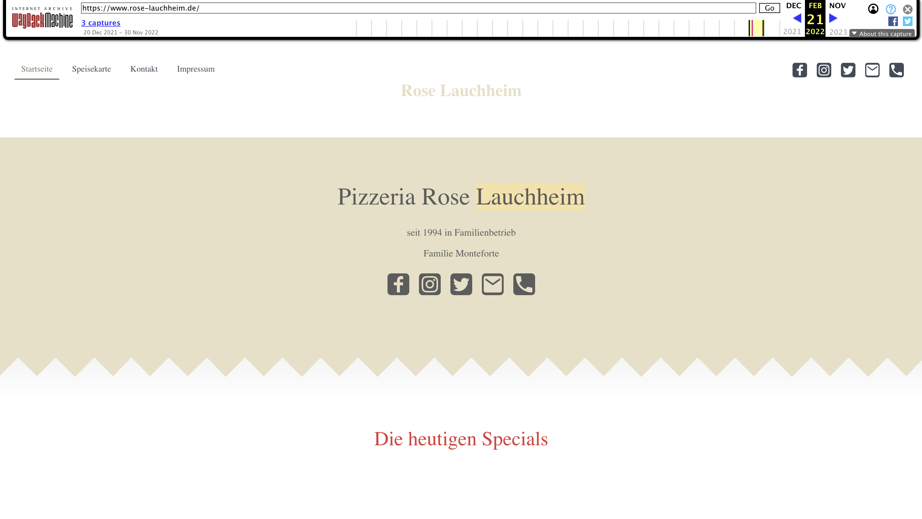 While no longer hosted at the rose-lauchheim.de domain, Pizzeria Rose seems to still be operational in Lauchheim, Germany. According to their excellent Google reviews, their pizza and pasta are delicious. The website button directs users to their Facebook.